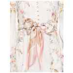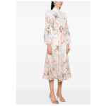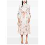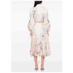 Ivory, floral print, button fastening, tie detail, high neck, long sleeves. Rebellion printed midi dress