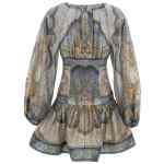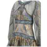 blue crew neck long sleeves elasticated cuffs centre back zip closure Wanderlust cotton and silk mini dress