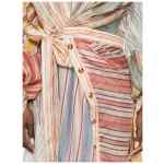 spliced stripes shirt collar button fastening belt long sleeves tiered hem Rebellion linen and silk dress