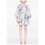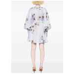 lilac linen floral print button front long sleeves belted waist Hypnotic linen shirtdress