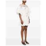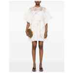 white rear zip fastening crew neck short sleeves all-over floral print Lucky linen mini dress