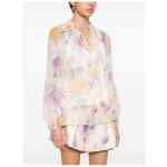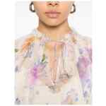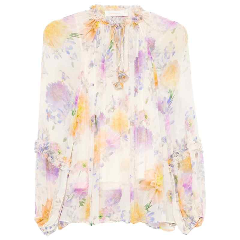 cream white/multicolour, floral print, ruffle trim, tie-fastening straps, long sleeves. Luna printed blouse.