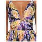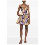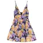 purple/yellow, floral pattern, zip fastening, deep V-neck, adjustable straps. Luna printed mini dress.