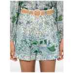 green/multicolour linen/flax pleat detailing Green Paisley print high waist belted waist belt loops concealed rear zip fastening two side slit pockets wide leg thigh-length This item contains at least 50% materials which are certified or widely recognised as having a lower environmental impact through production and/or manufacturing processes that reduce water consumption and the use of harmful chemicals, or re-use by-products of the production process. Learn more about what makes a product Conscious on our Conscious Criteria page Paisley print linen shorts