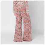 Copper-colored floral-print flared trousers by Zimmermann in viscose, featuring removable waist belt, flared silhouette, and back zip closure.