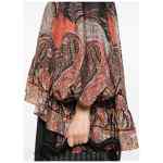 black self-tie fastening elasticated cuffs ruffle hem paisley print Rhiannon printed silk blouse