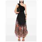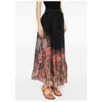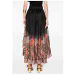 black drawstring waist elasticated waistband two side inset pockets ruffled detailing Rhiannon printed silk skirt