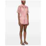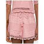 light pink crochet drawstring tie scalloped hem Wanderlust crochet cotton shorts
