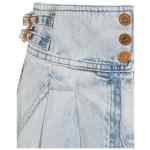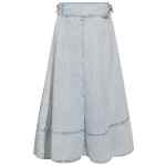 light blue button fastening buckle detail pleated panelled design Denim maxi skirt