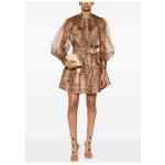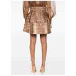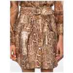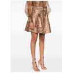 brown snakeskin print belted waist button fastening flap pockets Printed silk and cotton skirt