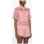 light pink crochet scalloped trim button fastening polo collar short sleeves Wanderlust crochet cotton top