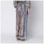 Wide trousers by Zimmermann in silk with tapestry-style print in blue tones, featuring elasticated drawstring waist and two side welt pockets.